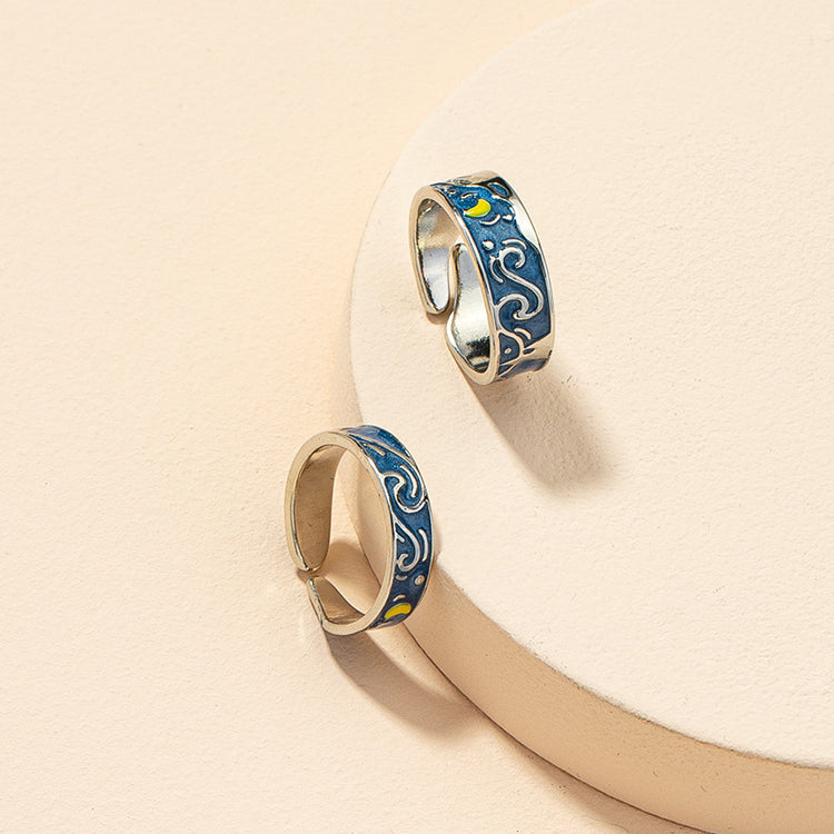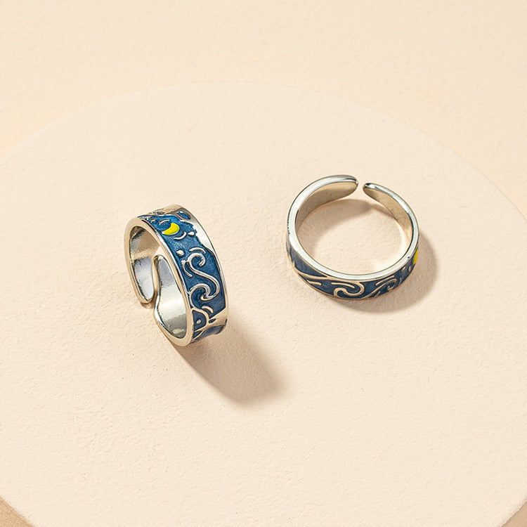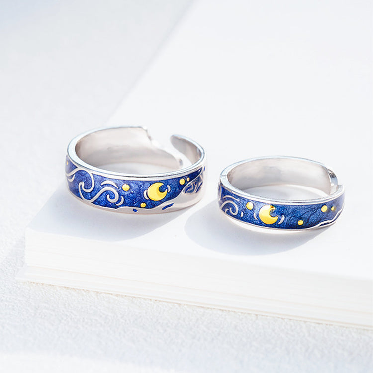 This matching pair of 925 sterling silver rings feature a bold, Van Gogh Starry Night design. Adjustable for a perfect fit, each ring is nickel-free, hypoallergenic and tarnish-resistant, giving you a fashionable accent that will last.